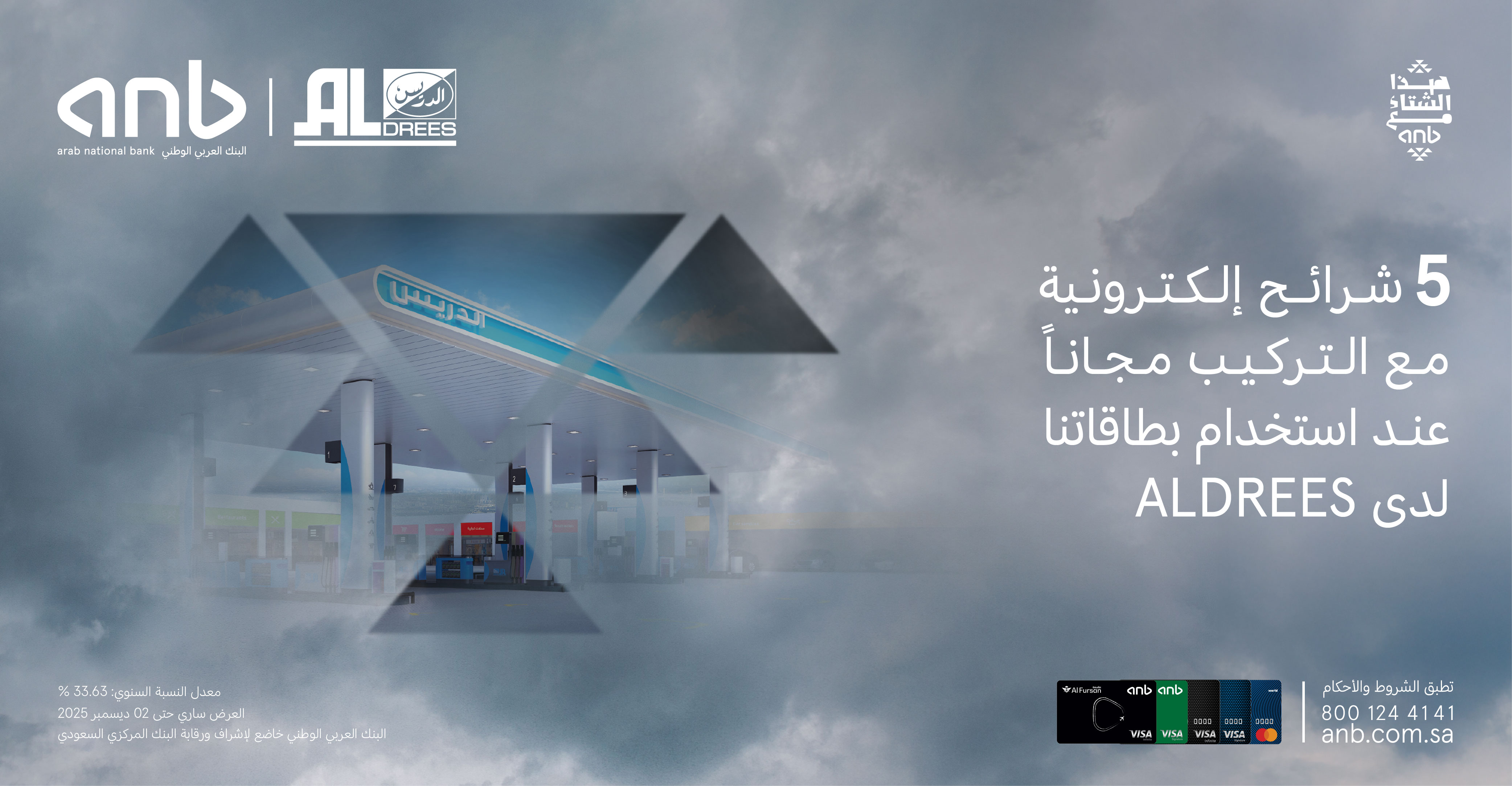1. يسري العرض لجميع المسجلين في برنامج مكافآت البنك العربي الوطني anb فقط.