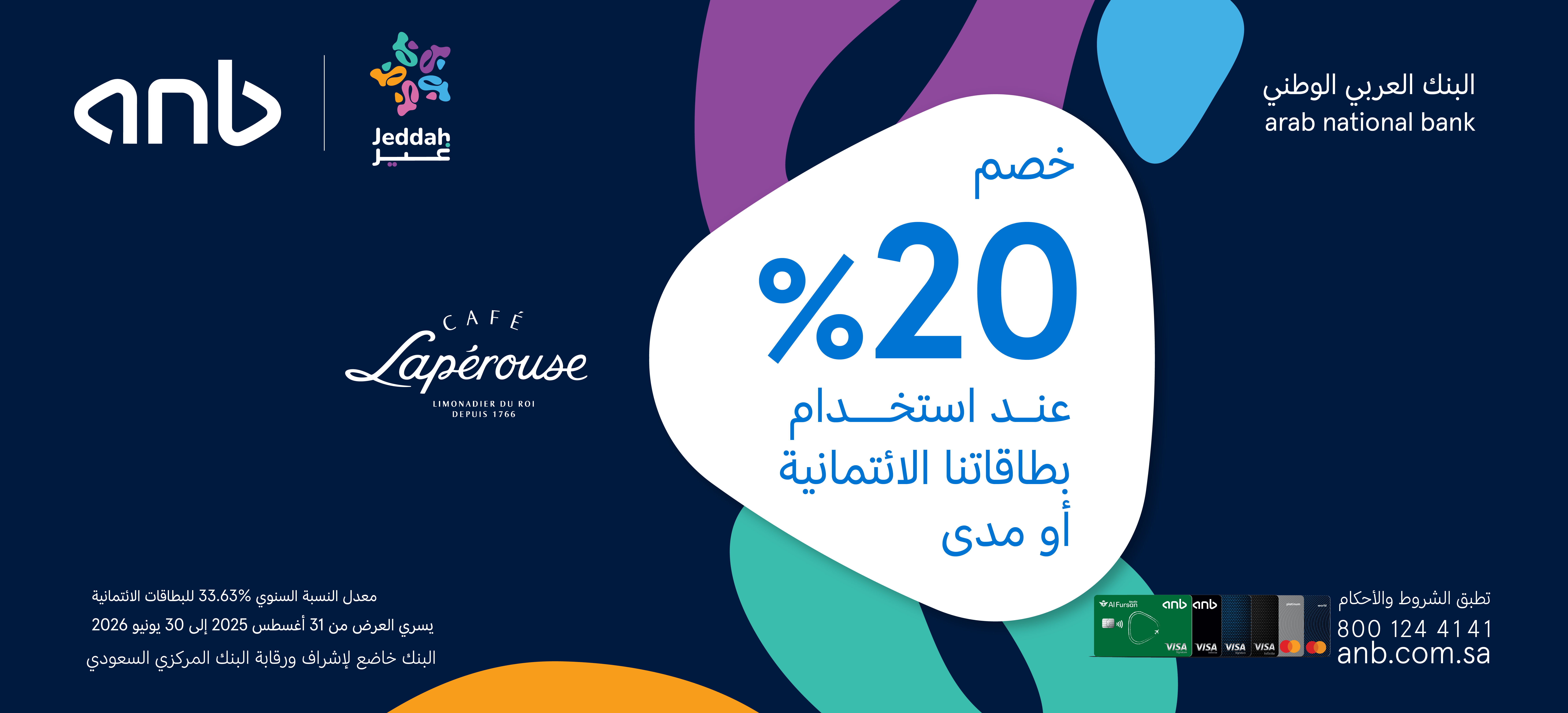- تطبق الشروط والاحكام الخاصة بالبنك العربي الوطني وكافيه لابيروز.