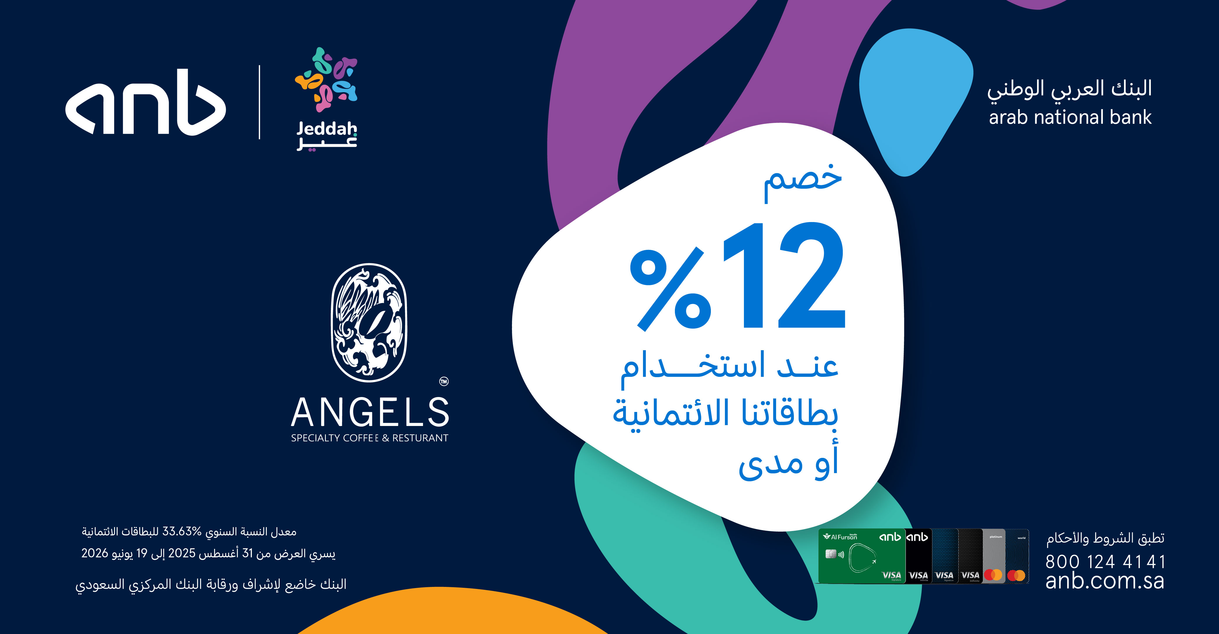 - تطبق الشروط والاحكام الخاصة بالبنك العربي الوطني anb وانجيلز كافيه.