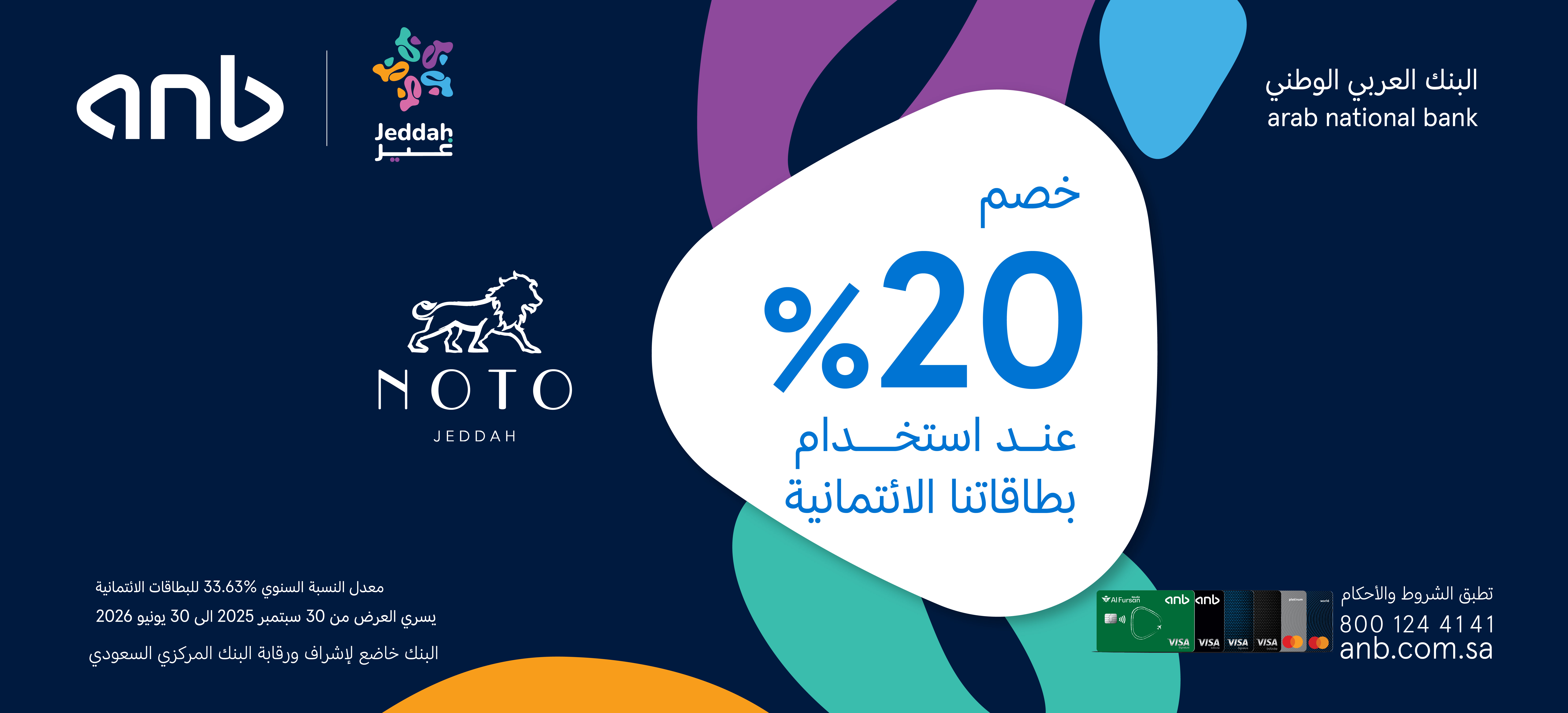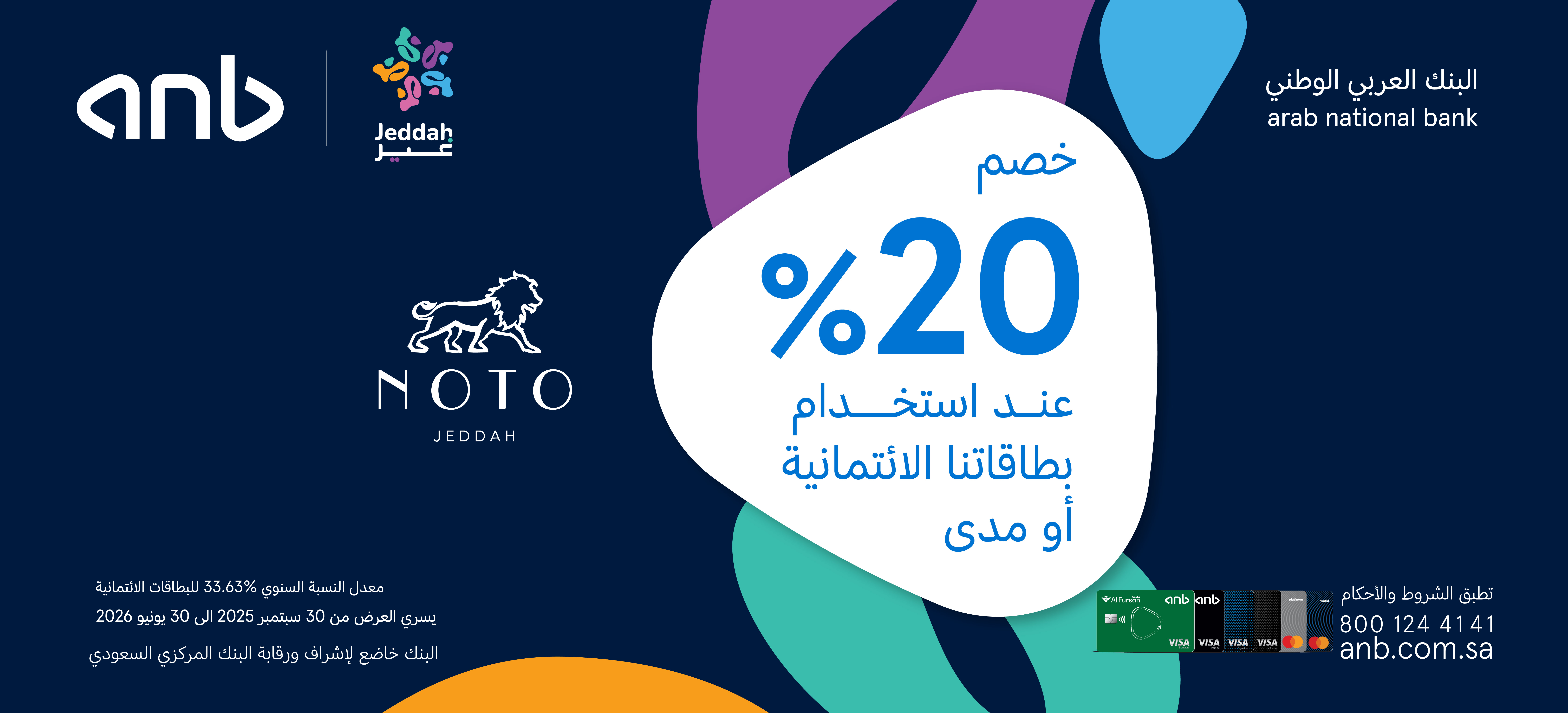 - تطبق الشروط والاحكام الخاصة بالبنك العربي الوطني anb ونوتو جدة.