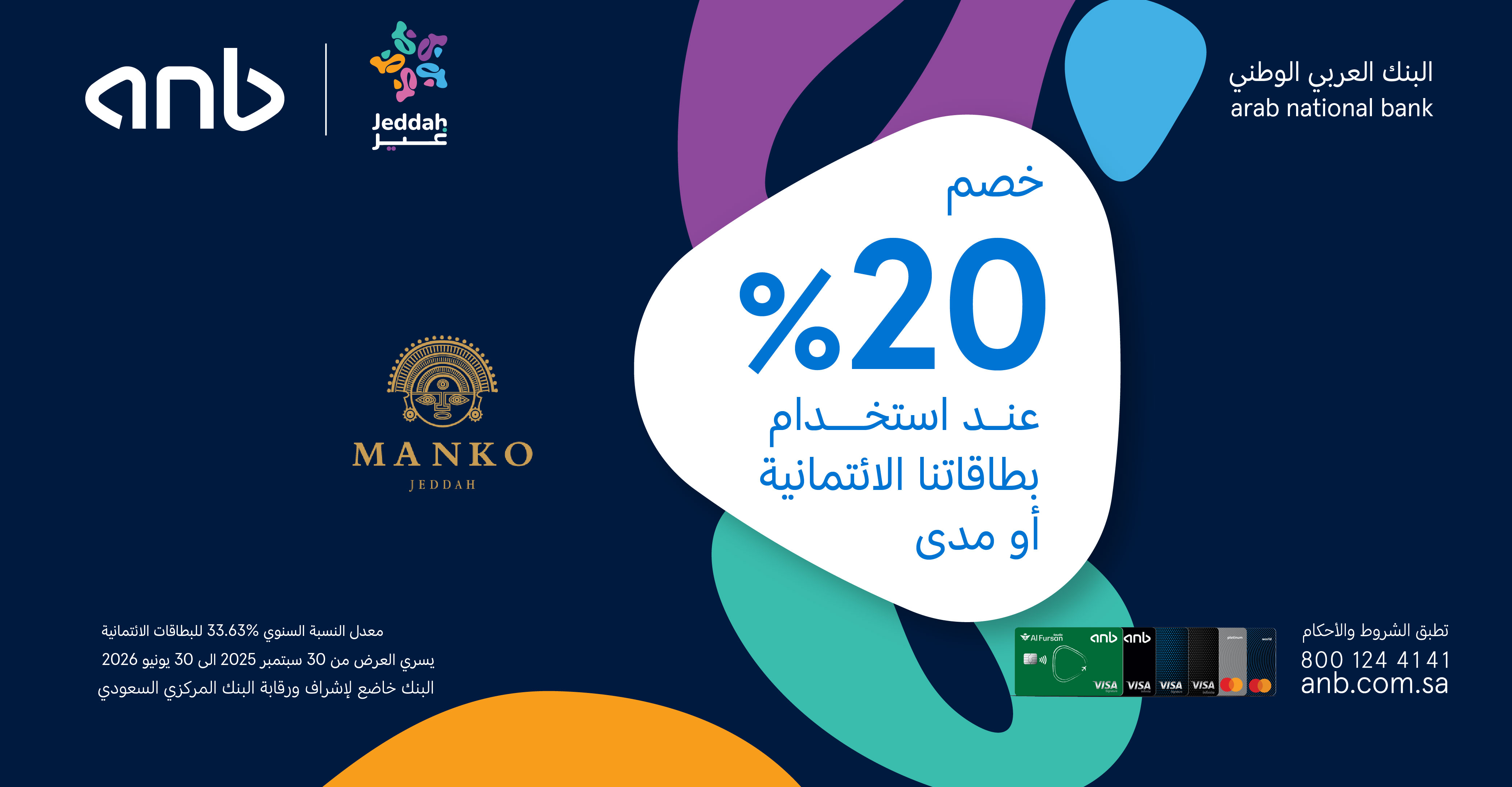 - تطبق الشروط والاحكام الخاصة بالبنك العربي الوطني anb ومانكو جدة.