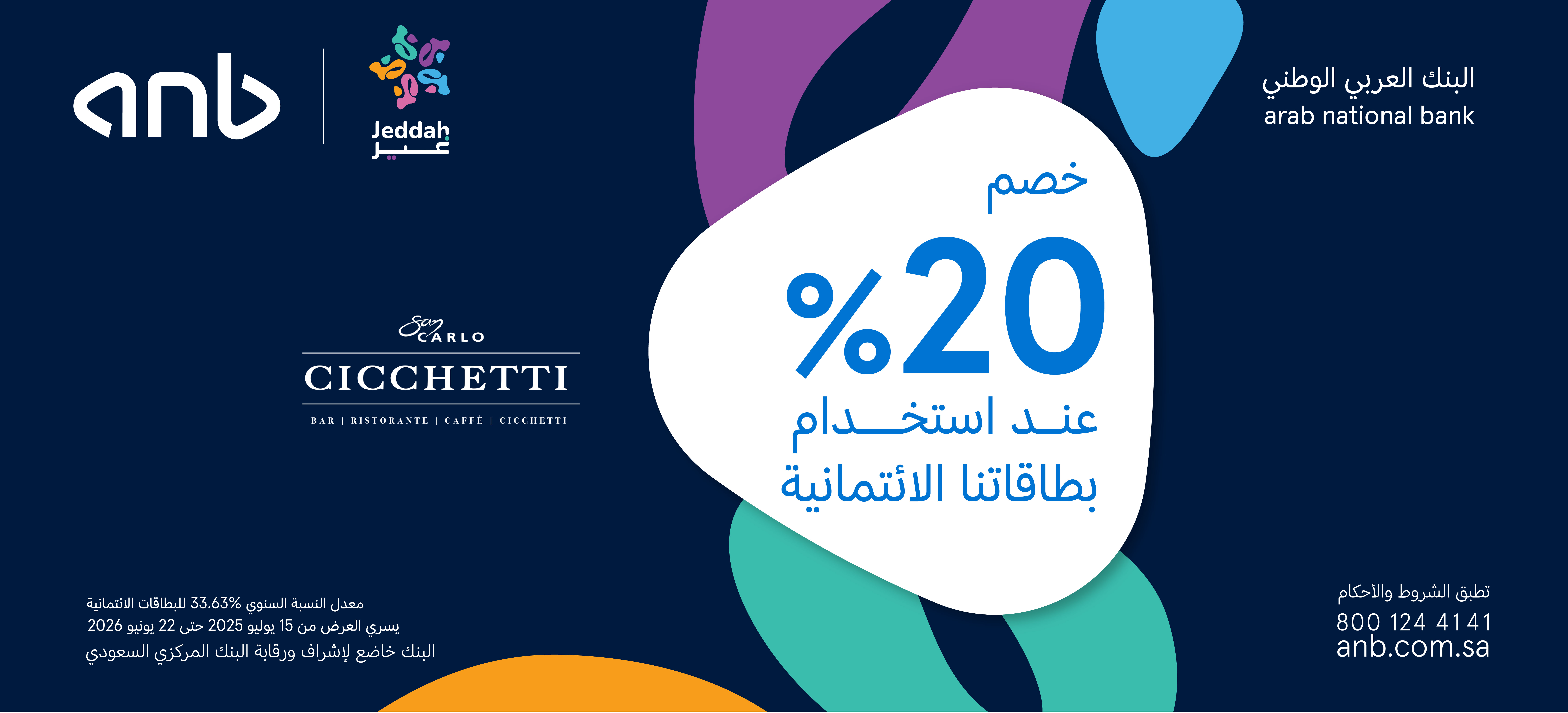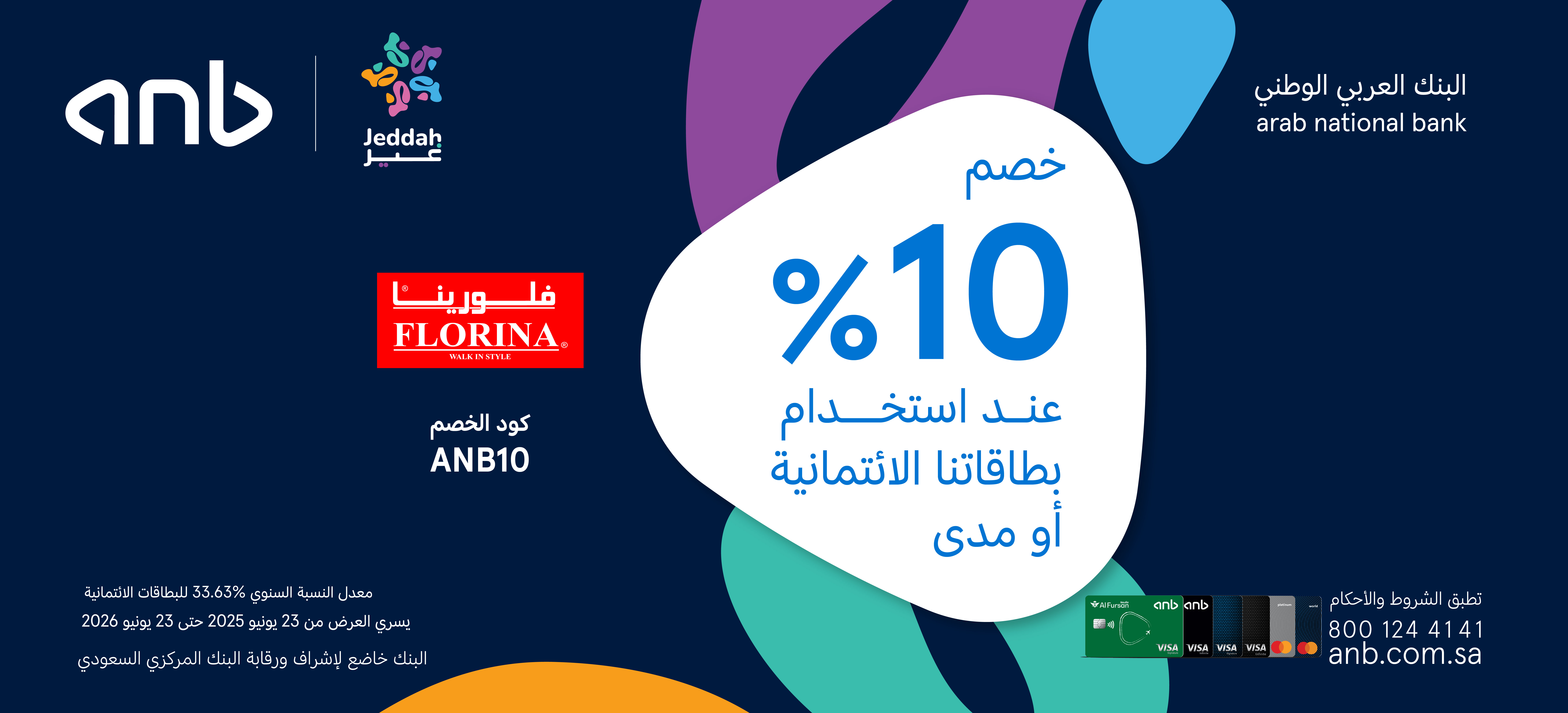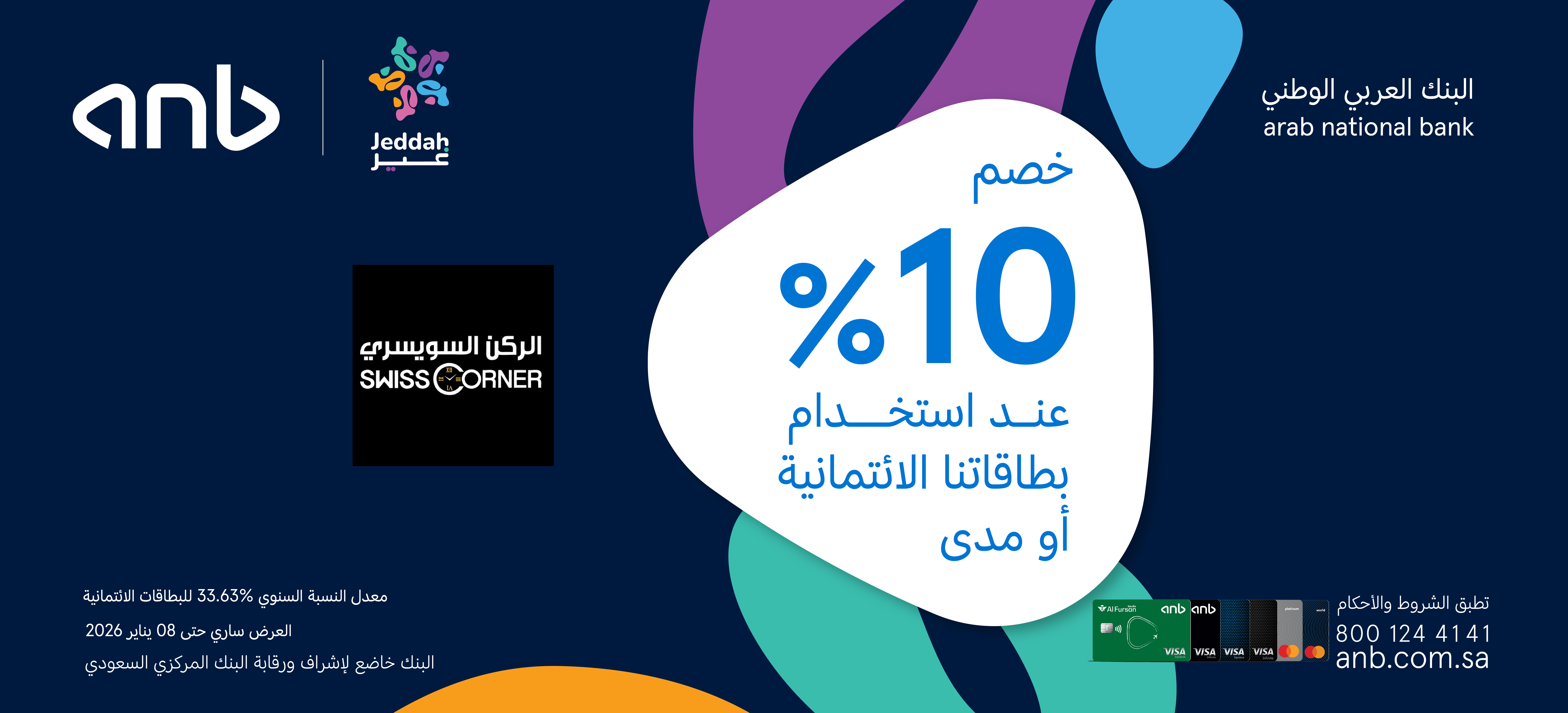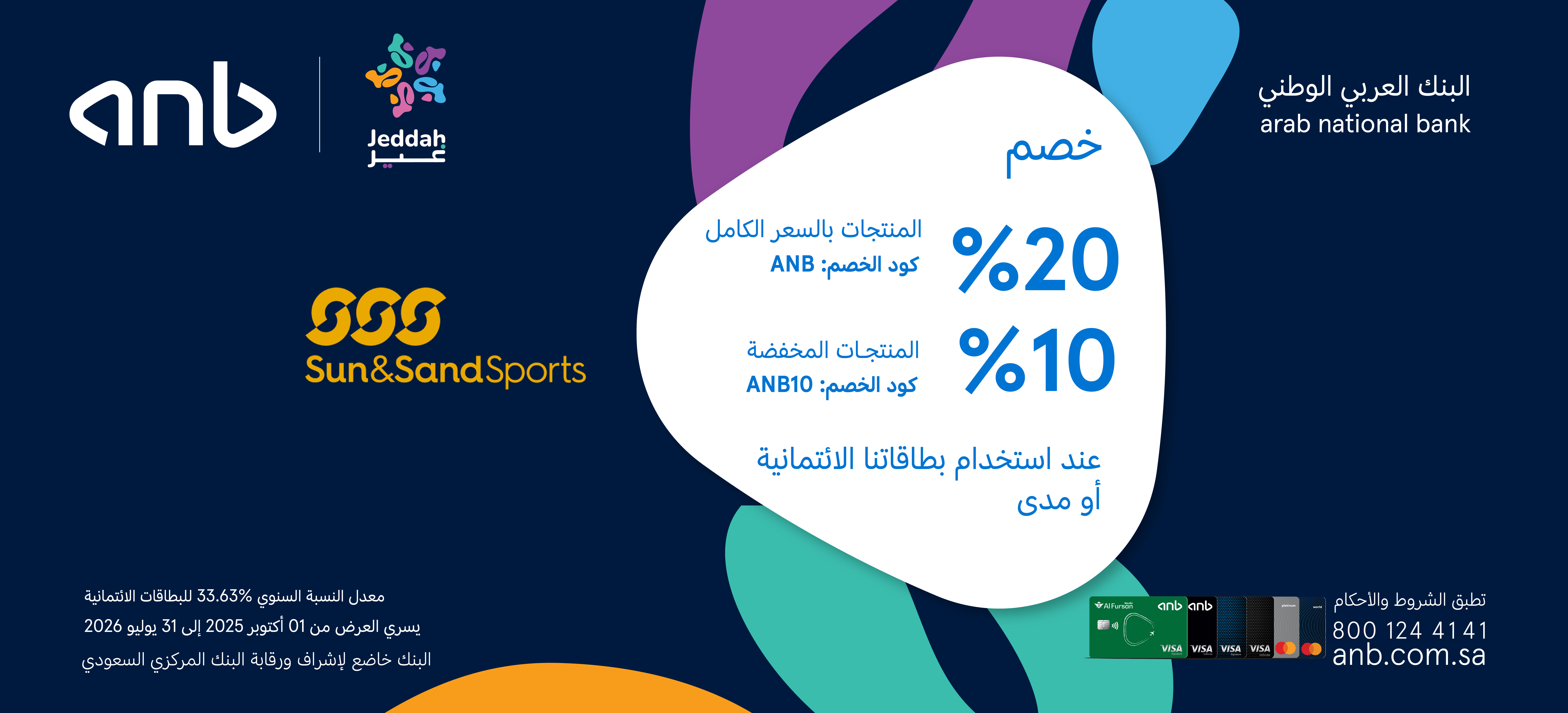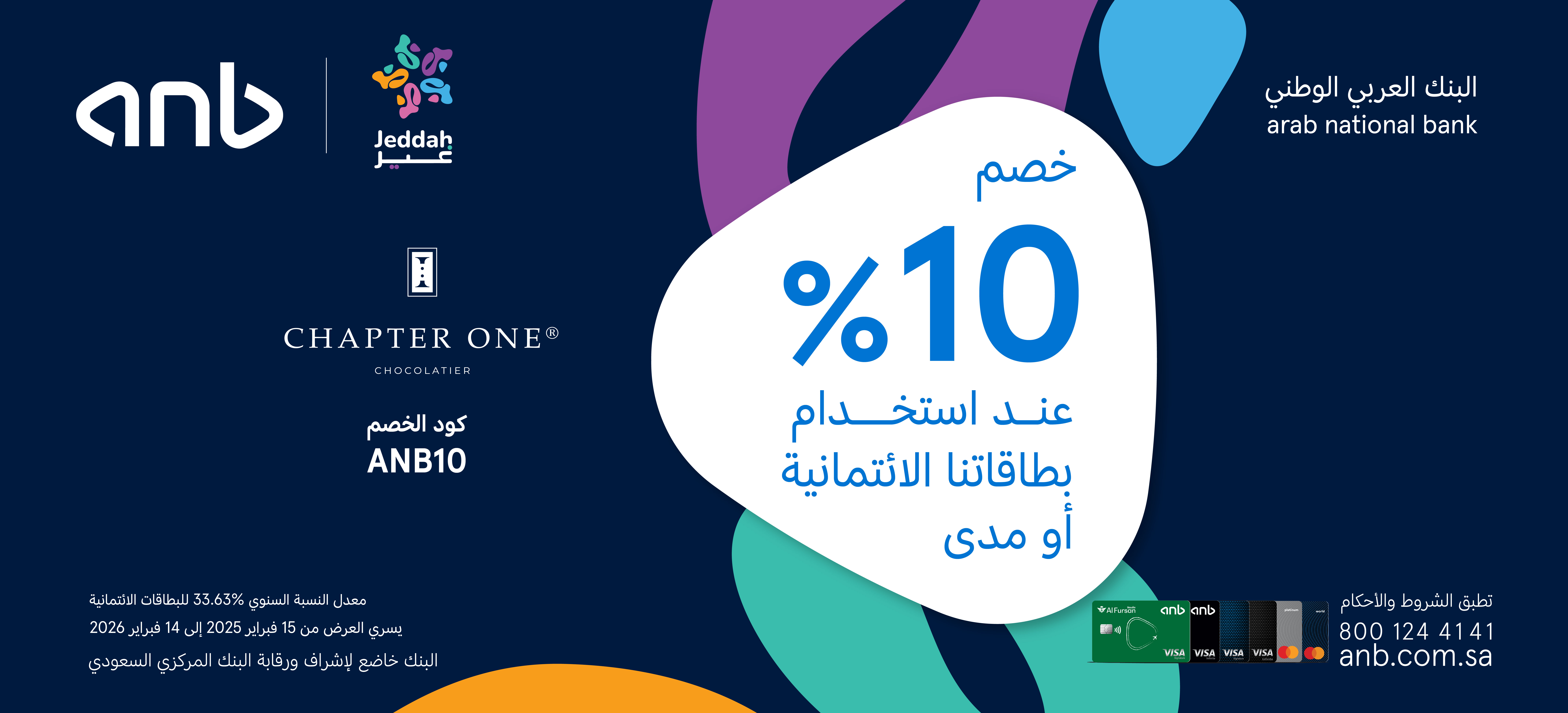 • العرض متاح لجميع حاملي بطاقات anb الائتمانية والمدينة.
