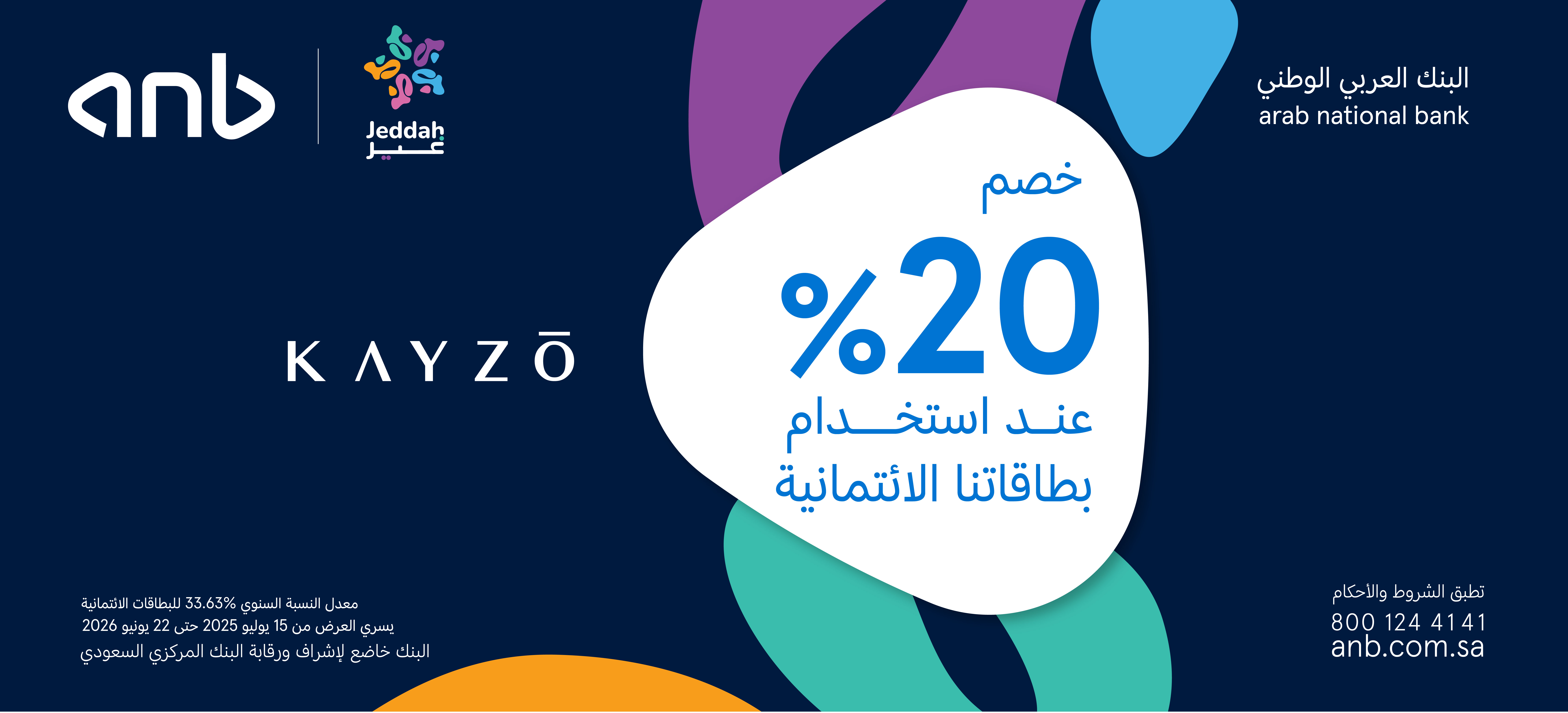 - تطبق الشروط والأحكام الخاصة بالبنك العربي الوطني (anb) ومطعم كيزو.
