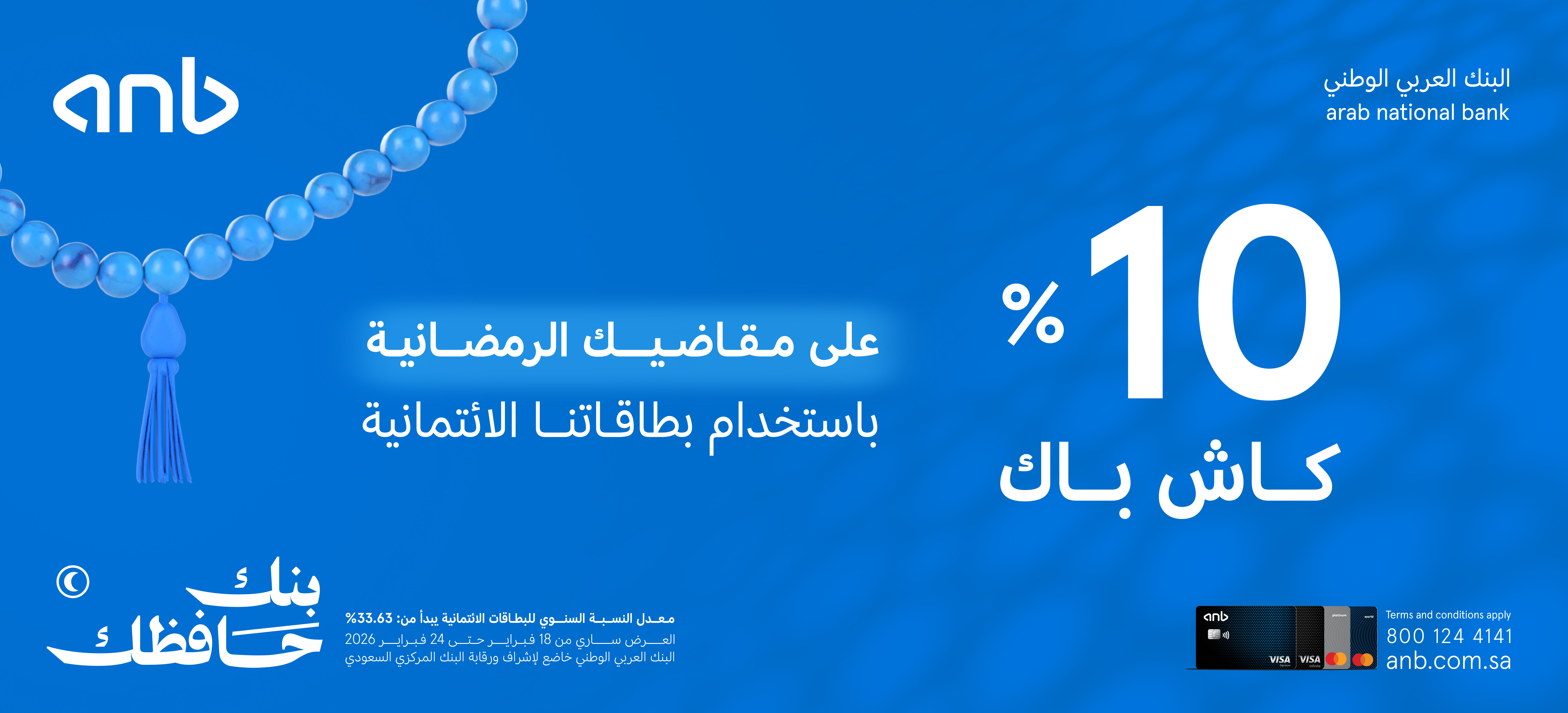 • استرداد نقدي 10% على مشتريات السوبرماركت باستخدام بطاقات anb الائتمانية