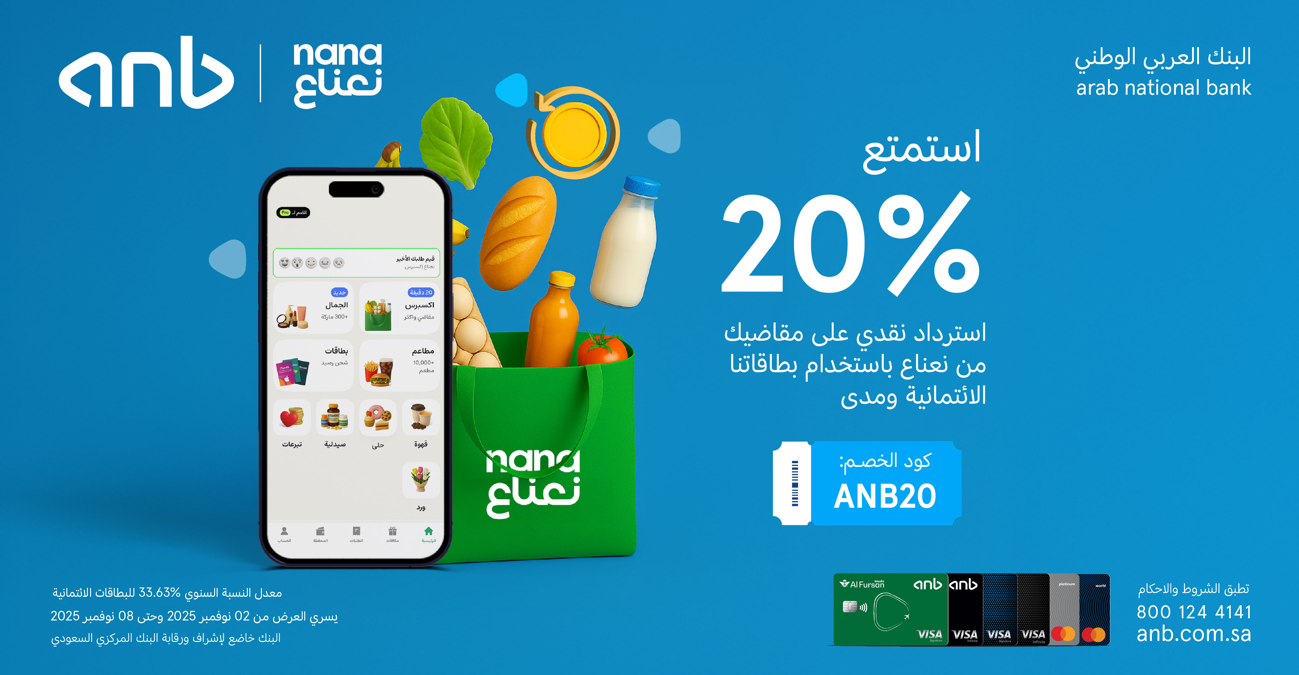 - تطبق الشروط والأحكام الخاصة بالبنك العربي الوطني anb ونعناع.