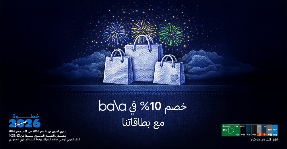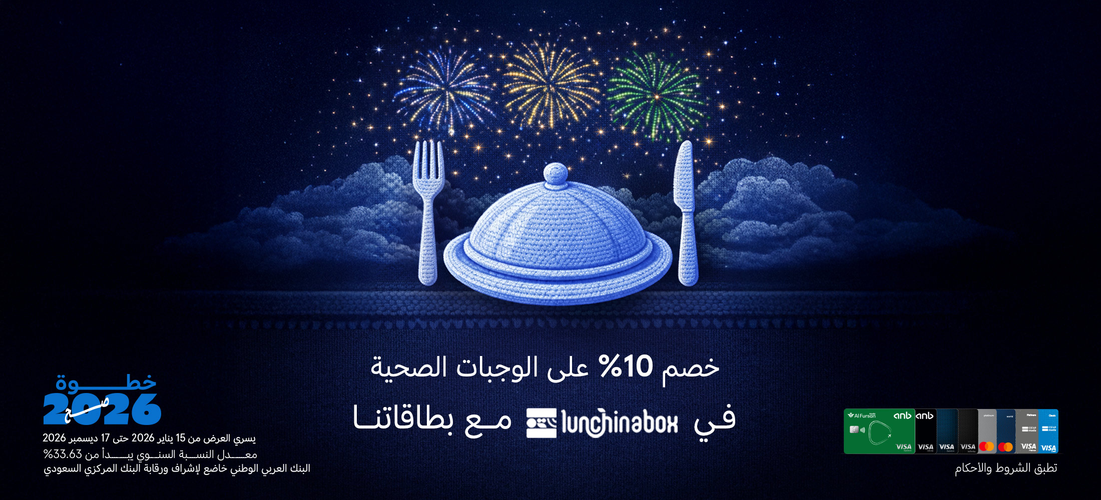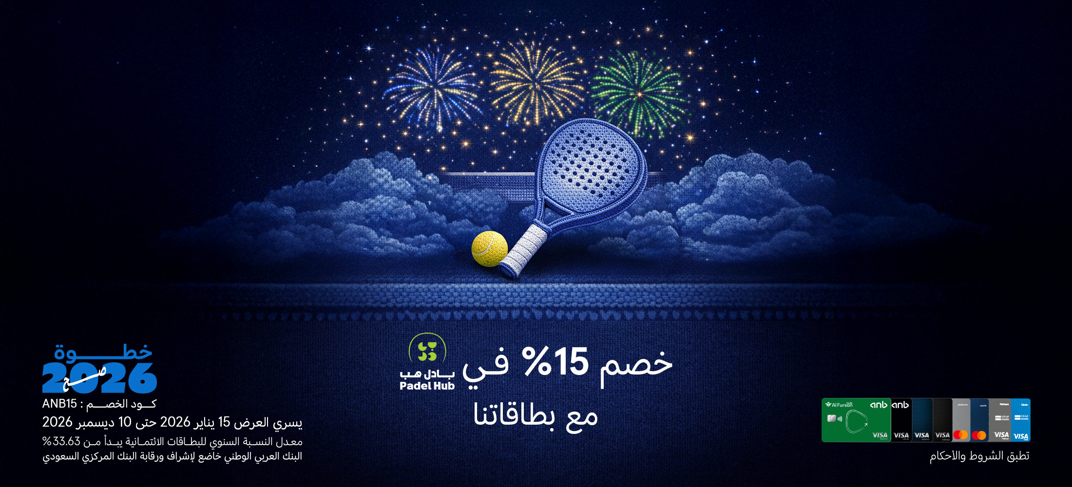 - يسري العرض عند استخدام الرمز الترويجي (anb26) والدفع باستخدام بطاقات ائتمان البنك العربي الوطني.