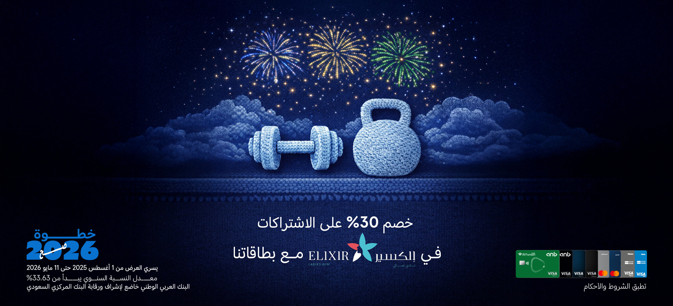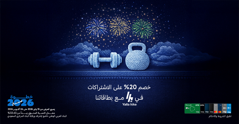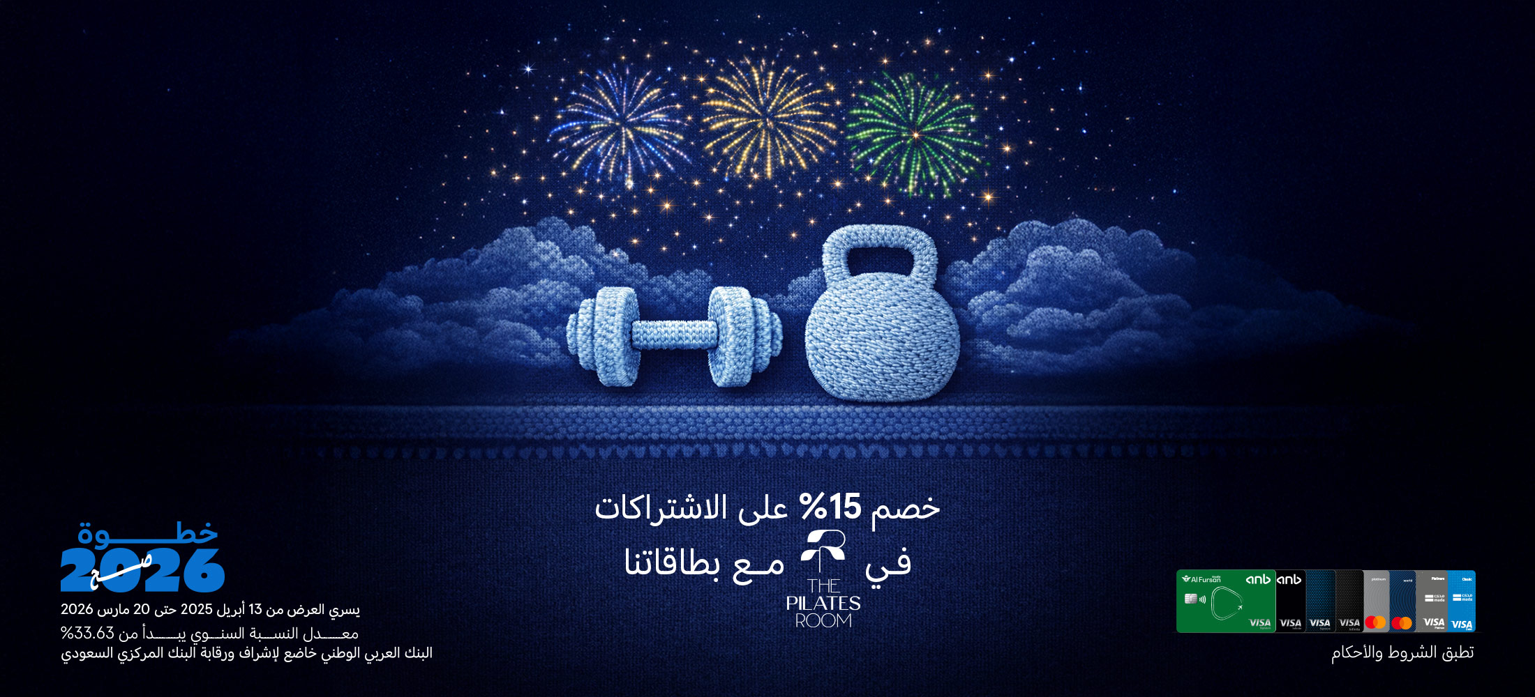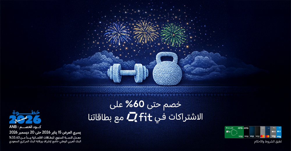 - يسري العرض عند استخدام الرمز الترويجي (anb26) والدفع باستخدام بطاقات ائتمان البنك العربي الوطني.