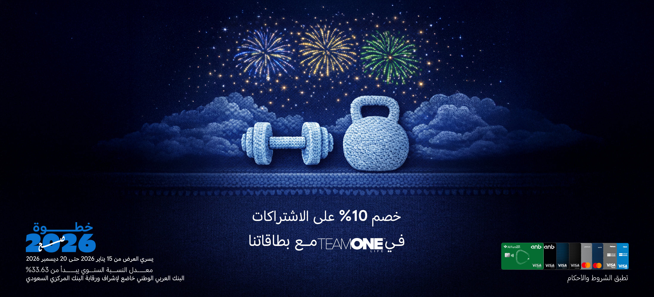 - تطبق الشروط والاحكام الخاصة بالبنك العربي الوطني anb وتيم ون لايف.