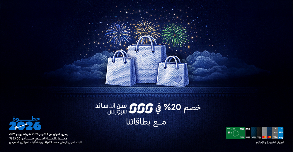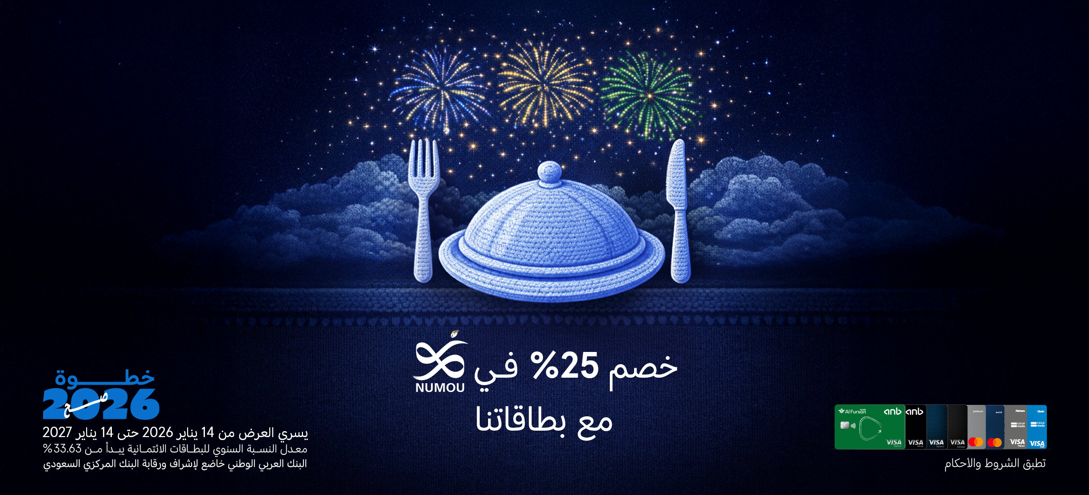 - العرض متاح لجميع حاملي بطاقات البنك العربي الوطني الائتمانية وبطاقات مدى.