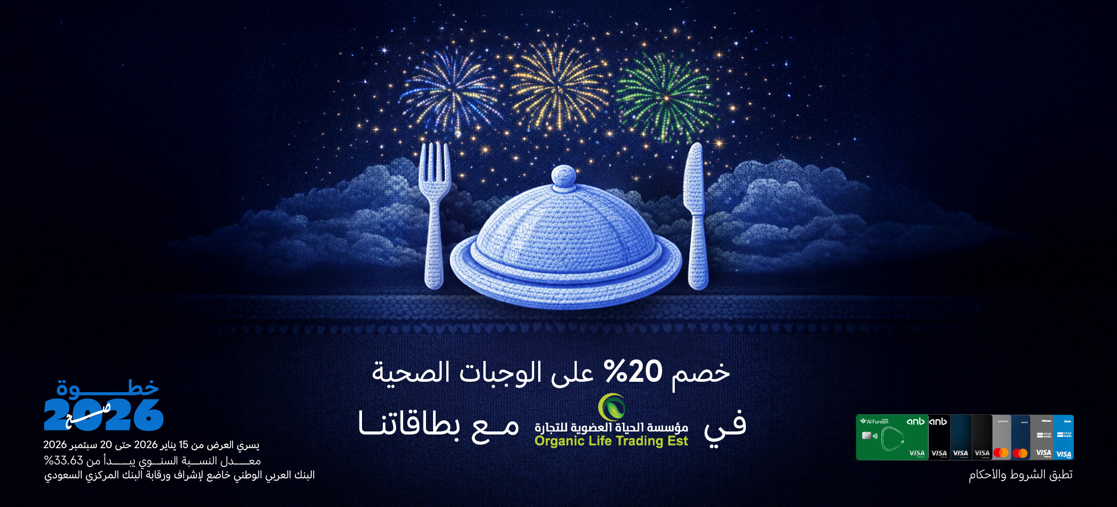 - تطبق الشروط والاحكام الخاصة بالبنك العربي الوطني ومتجر الحياة العضوية.