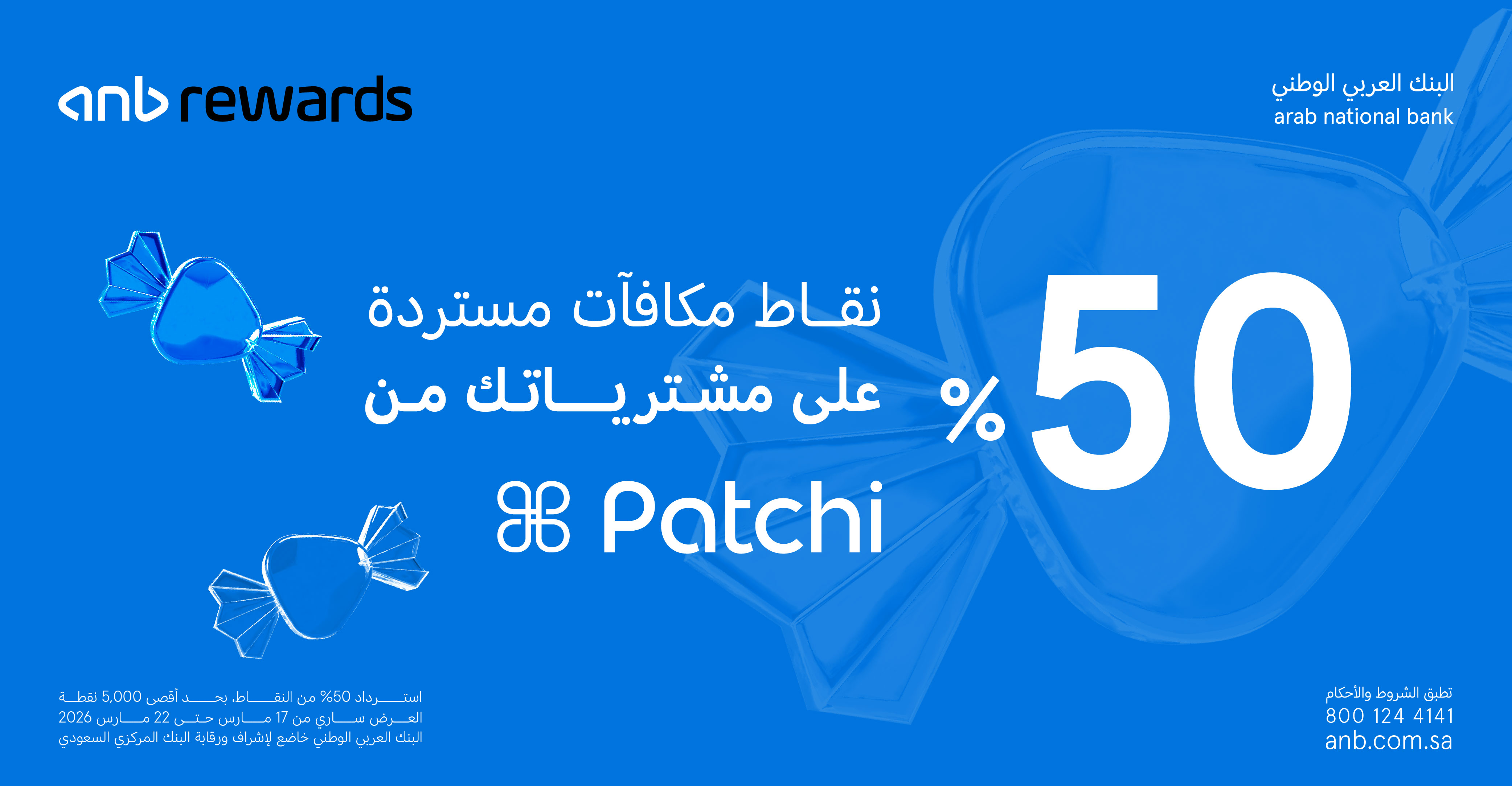استمتع باسترجاع 50% من نقاطك عند الدفع باستخدام نقاط مكافآت anb في فروع باتشي.