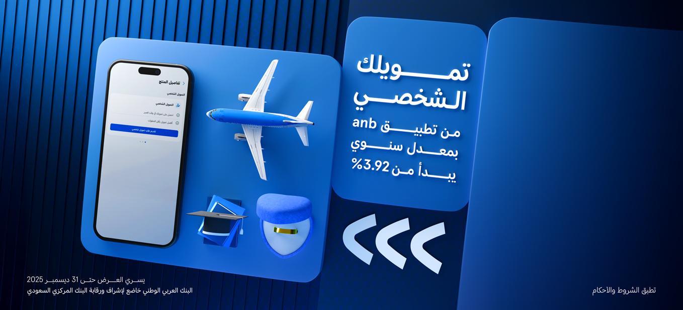 العرض يشمل خصم حصري ( 0.10%) للعملاء المتقدمين عن طريق تطبيق anb.