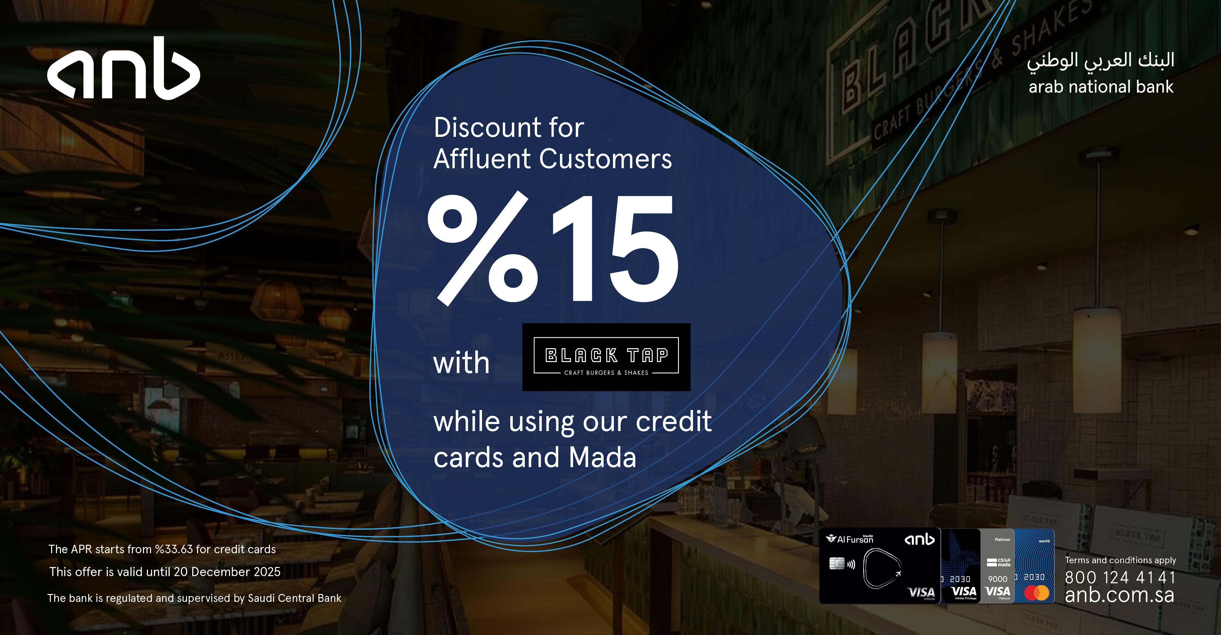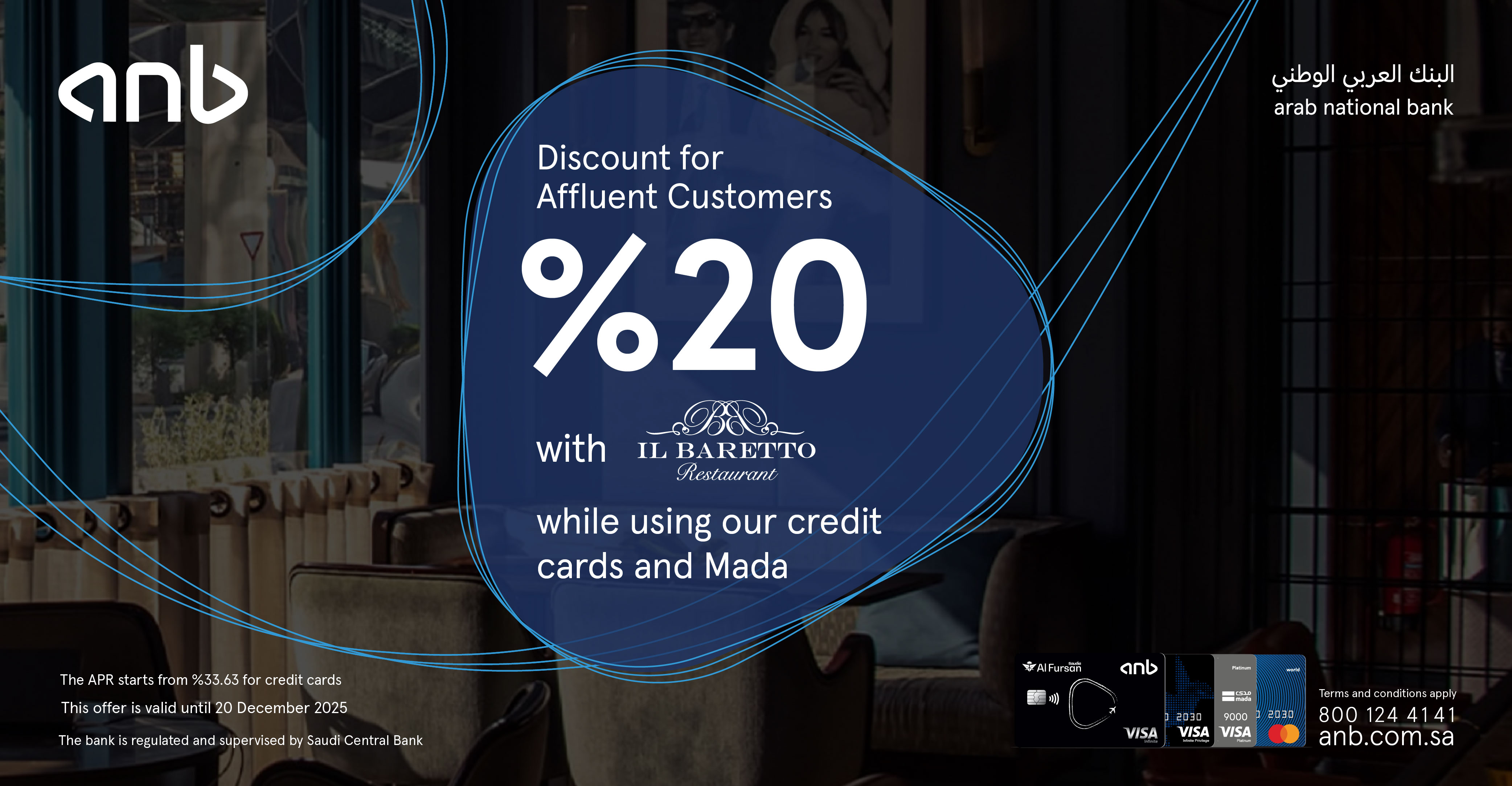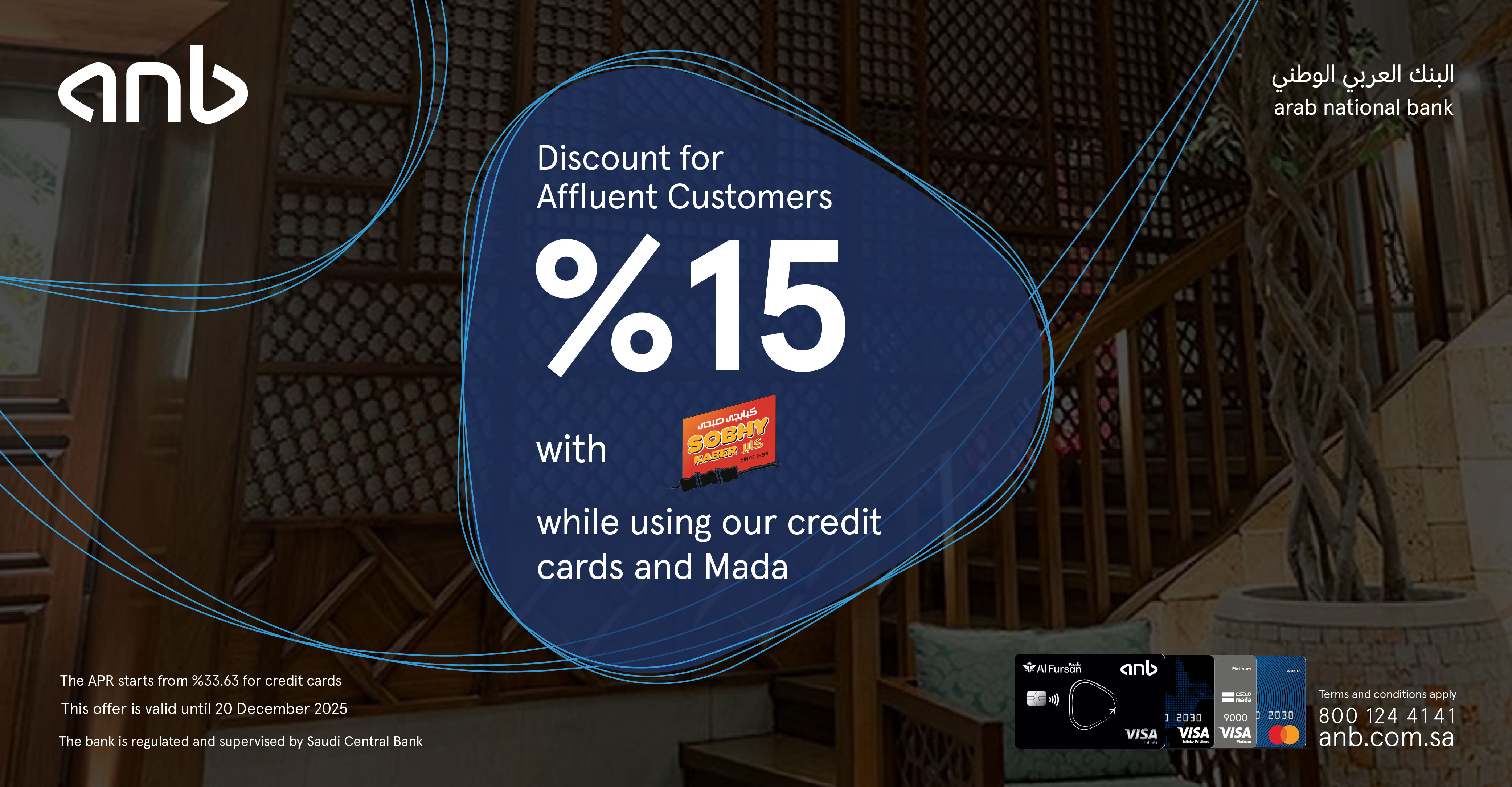 - The offer includes all anb affluent cardholders Mada (Gold, Platinum and Infinite) and credit cards (Signature, Infinite, MasterCard World Elite, Al Fursan)