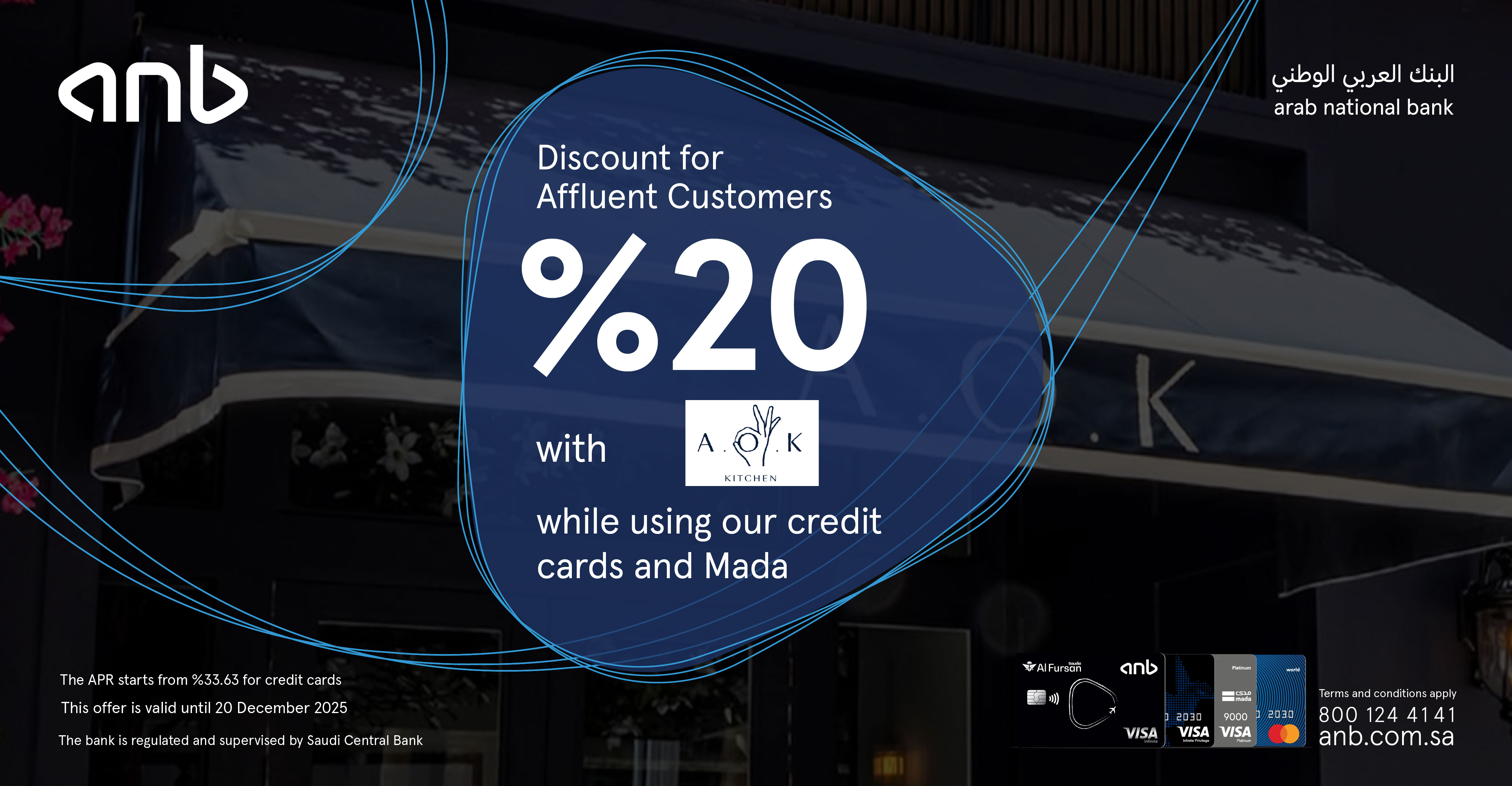 Enjoy 20% at AOK restaurant for anb affluent cardholders.