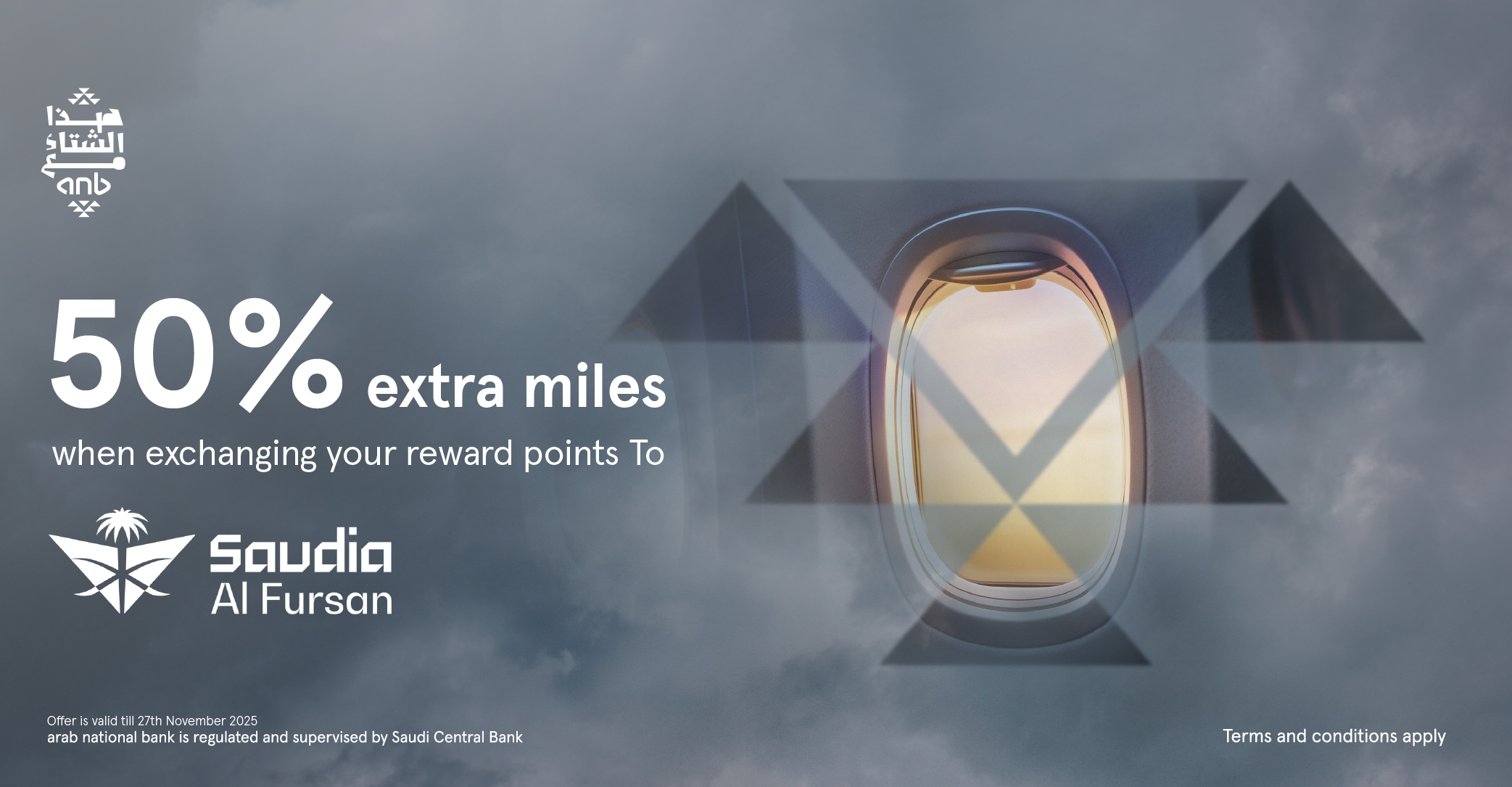 Enjoy a 50% Extra Miles when you exchange your anb Rewards points to Alfursan Miles.