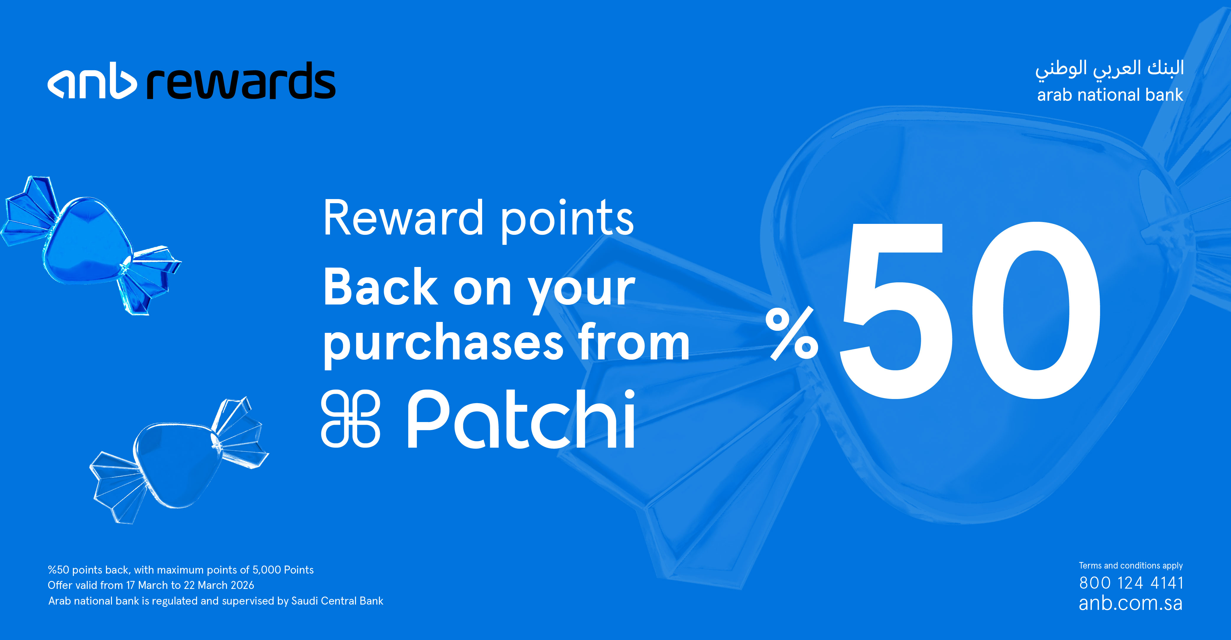 Enjoy 50% Points Back when you pay with your anb Rewards points at Patchi stores.