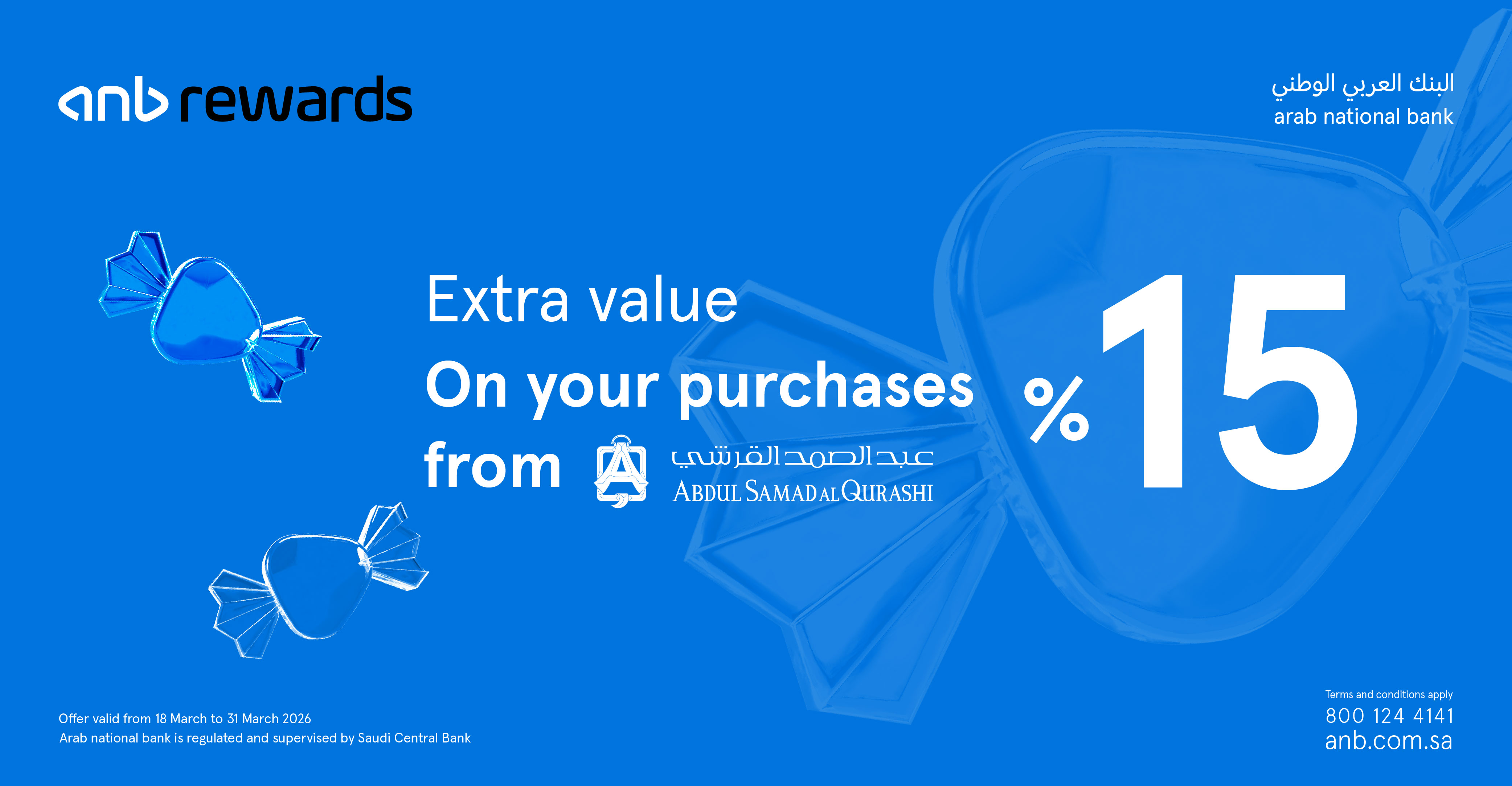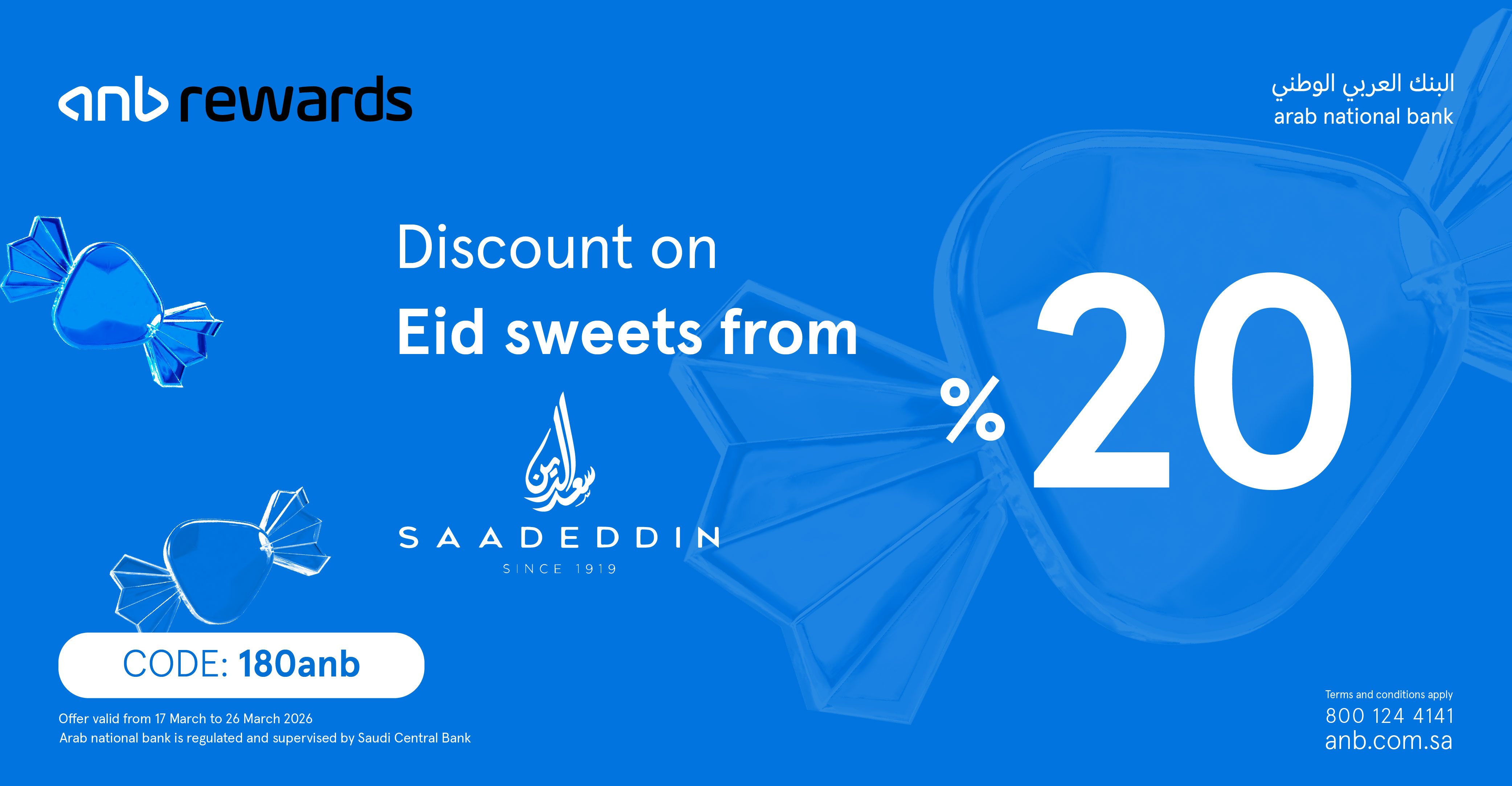 Enjoy up to 20% discount at Saad Eddin when you pay using your anb Rewards points.