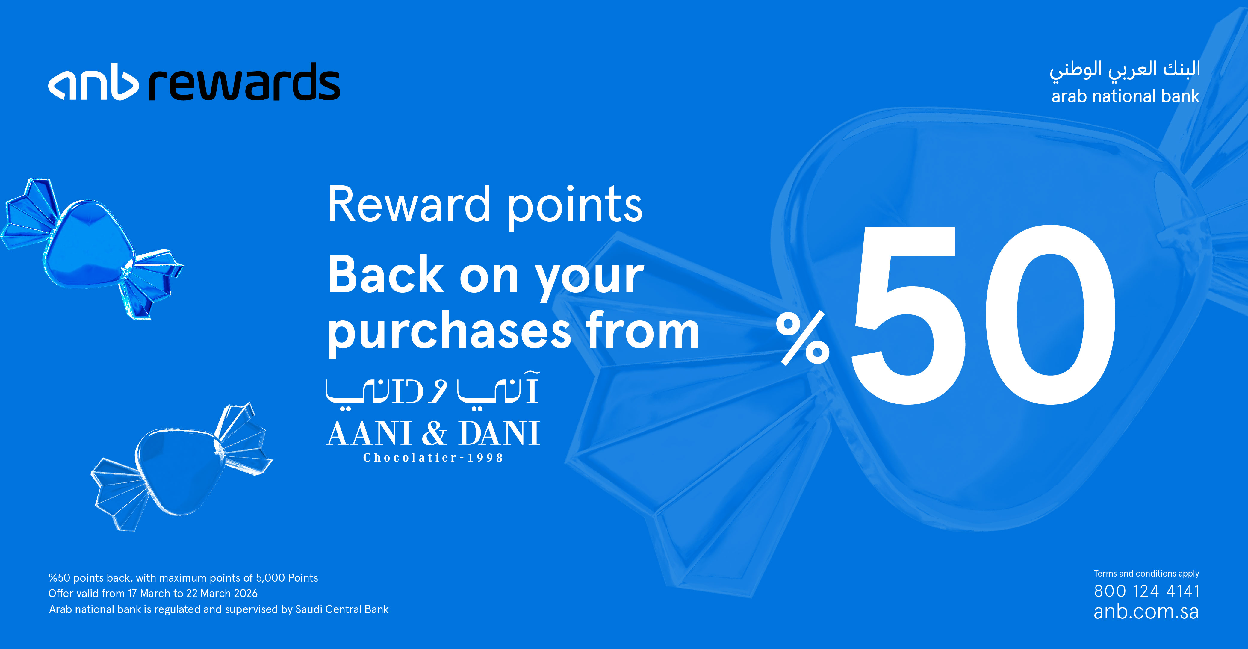 Enjoy 50% Points Back when you pay with your anb Rewards points at Aani & Dani stores.