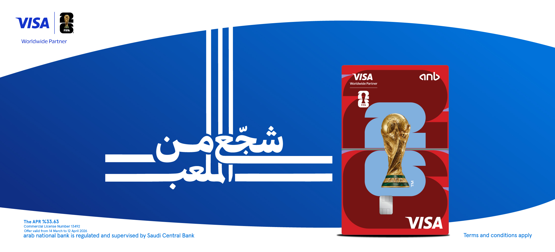 The anb Visa Signature credit card qualifies you for a chance to win and attend the 2026 FIFA World Cup matches in the United States, offered by Visa.