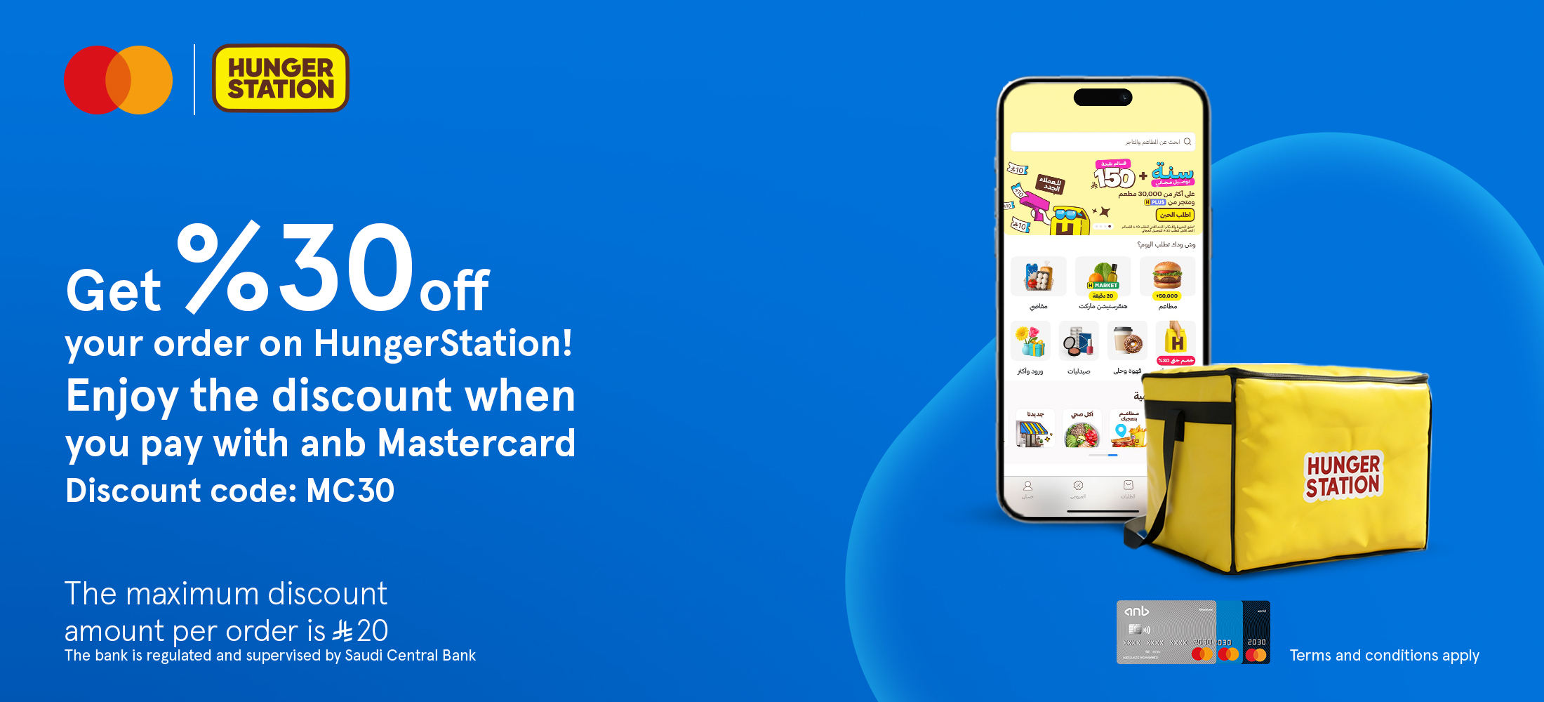 - Redemption Method: Order with Hungerstation with your eligible Mastercard to enjoy 30% off 1 time per month. Download the Hungerstation app and enter promo code [MC30].